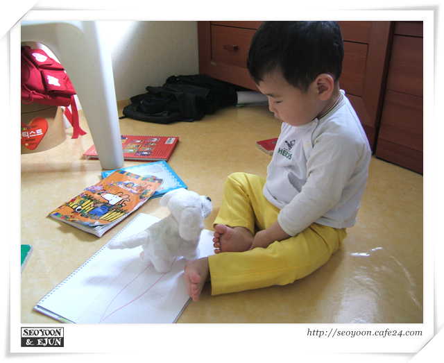 #사진 아래 : 이준이의 강아지인형과의 진지한 대화~
