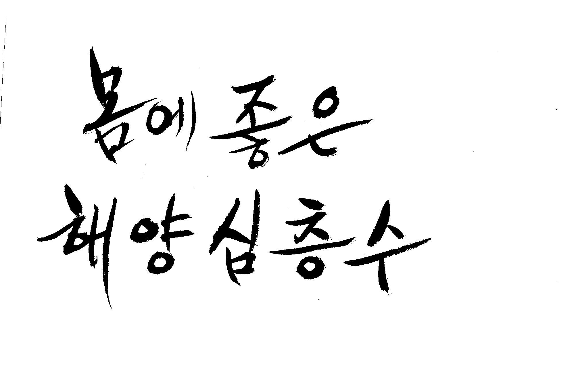 캘리 부탁드려도 될지~ 김철호 일반 1 8201 2009.01.20 00:54 > > > > > > > > > > > > > > 안녕하세요~ > > > > 항상 좋은 정보 많이 보고 가고 있습니다. > > > > 감사합니다~ > > > > 캘리 좀 부탁드려도 될지 모르겠어요. > > > > ' 몸에좋은(愛), 해양심층수' > > > > 바쁘신데 부탁드려요~ > > > > 눈길에 안전운전하시구요~ ^^ > > > > > > > > > >